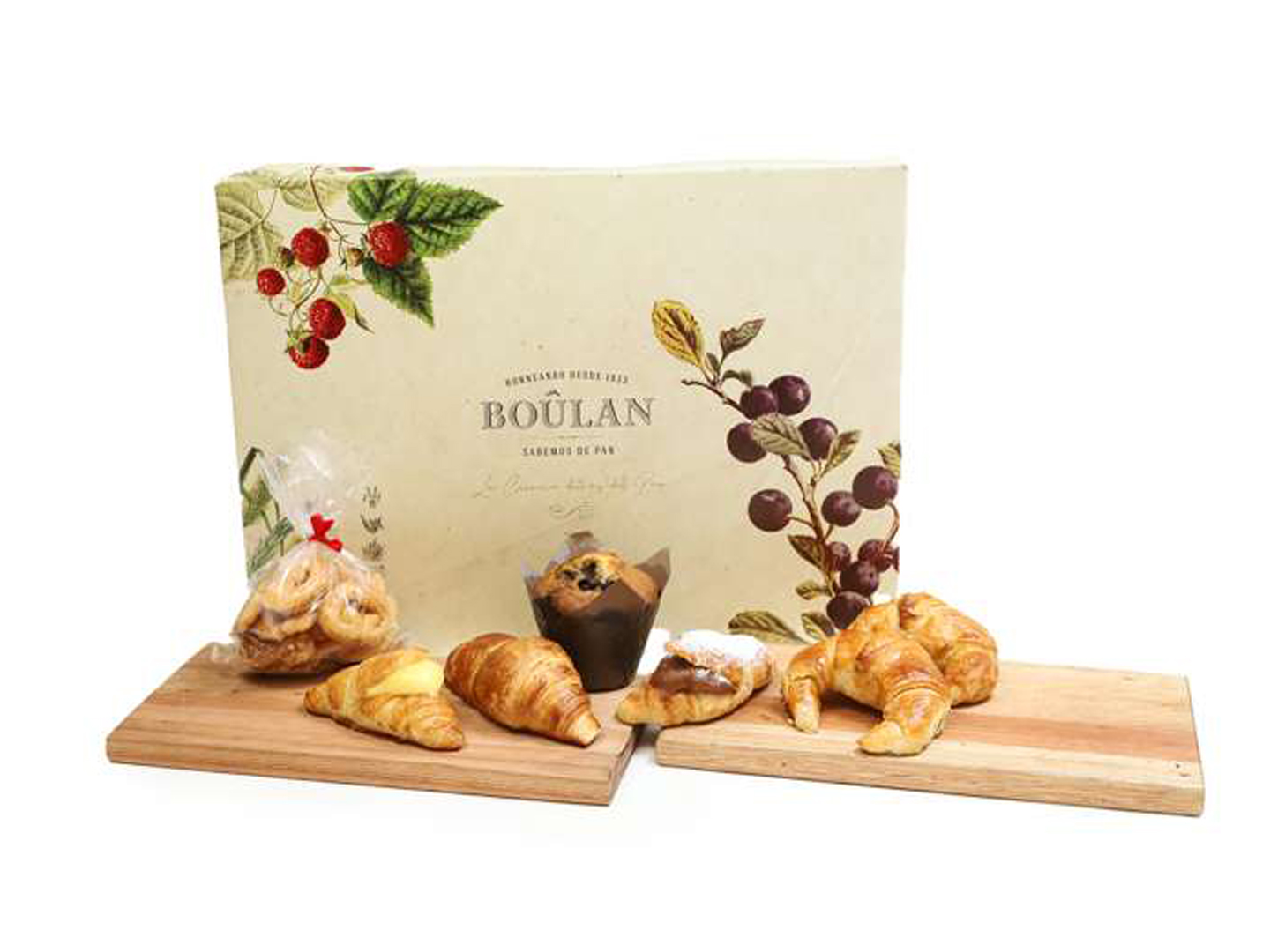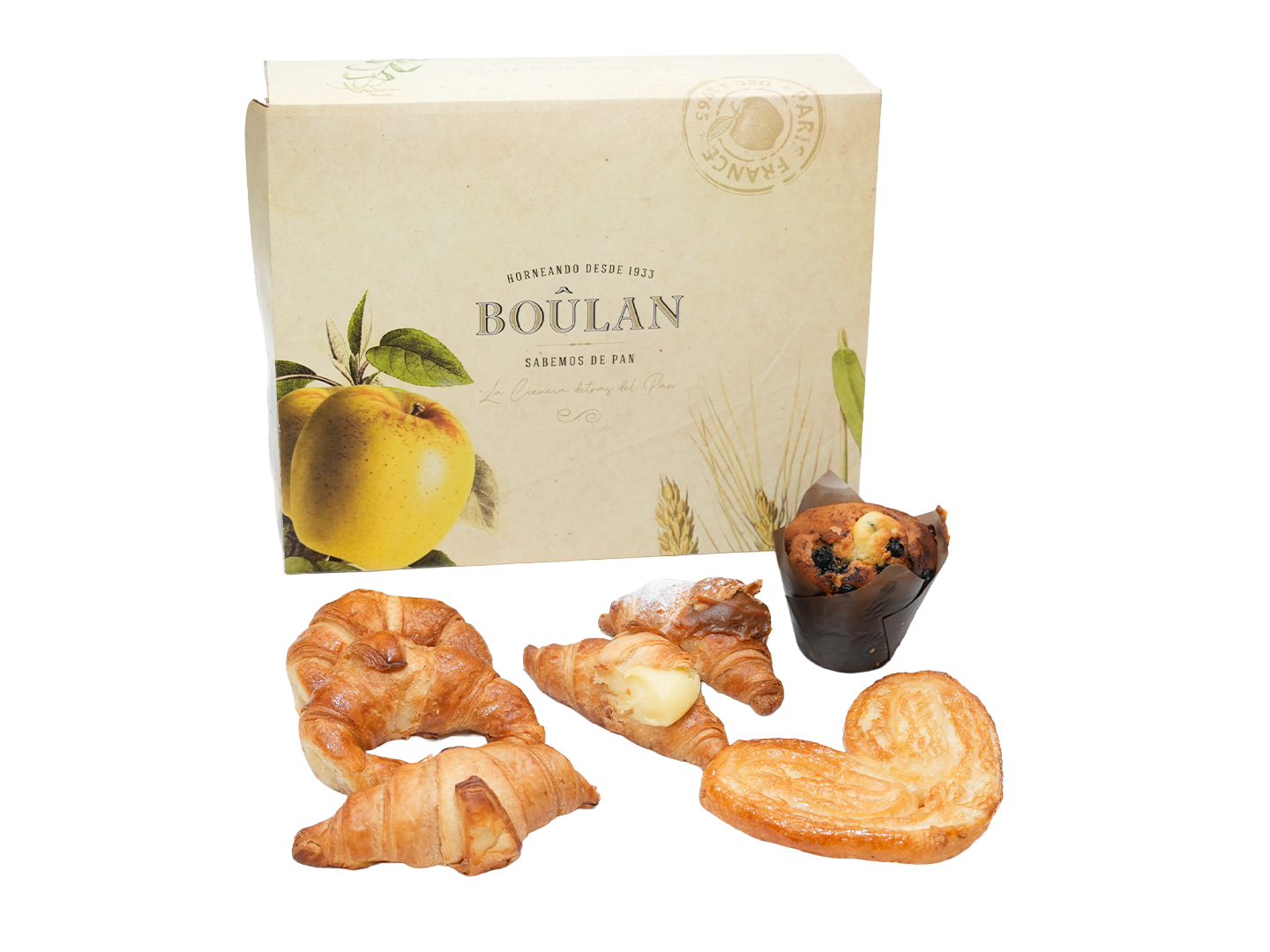 2 Medialunas, 1 Sacramento con DDL, 1 Sacramento con Pastelera, 1 Croissant, 1 Muffin de Arándanos y 1 palmerita XL