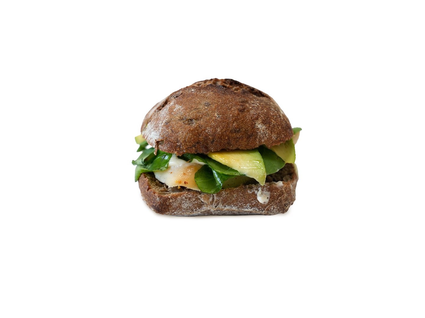 Petit Bavaria, pollo marinado, rúcula y palta